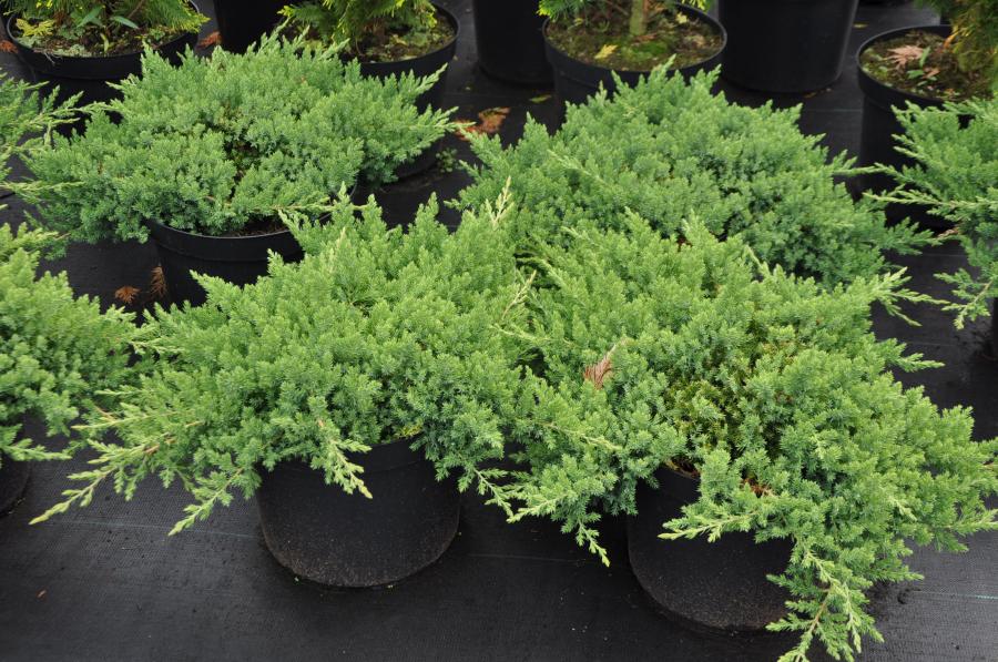 Можжевельник лежачий Нана Представленная на фото каталога культура широко культивируется на территории Японии. В этой стране она встречается в горах в диком виде. Это разновидность можжевельника китайского. Декоративная форма выращена в питомнике D.Hill Nursery Co, который находится в Америке. В 1904 году растение поступило в общую продажу. Ботаническое описание У можжевельника лежащего Нана довольно медленные темпы роста. В среднем годичный прирост в ширину равен 5 – 7 см, а в высоту – 2 – 3 см. В 10-летнем возрасте размер саженцев колеблется в пределах 30 см в высоту, и 75 см в диаметре. В дальнейшем хвойник разрастается до 150 см в диаметре и 50 см в высоту. Хвоя мелкая – шириной 2 мм и длиной около 8 мм. Она шиловидная, густо размещена на ползучих побегах, зелёно-голубой окраски. Крона широкораспростёртая, горизонтальной формы. Молоденькие побеги гибкие, стелющиеся по почве. Постепенно они становятся жёсткими и приподнимаются над землёй в центральной части кустарника. Применение Можжевельник лежащий Нана пользуется большим спросом среди садоводов и ландшафтных дизайнеров. Благодаря аккуратной кроне он считается универсальной культурой и подходит для озеленения небольших дачных участков. Многолетник часто применяют в качестве почвопокровного растения для придания цветного акцента в групповых посадках. Это идеальный вариант для украшения рокариев, альпийских горок и многоярусных композиций. Также можжевельник этого сорта выращивают в контейнерах для украшения балконов, открытых лоджий и веранд, террас и садов на крыше. Агротехника Почвы можжевельник лежащий Нана любит разные. Главное чтобы они были хорошо дренированные, относительно плодородные и увлажнённые. Также саженцы переносят незначительное затенение, но лучше выбирать солнечные места. Корневая система хвойника интенсивно оплетает крупные камни, которые послужат для неё надёжным фундаментом. Прежде чем начать высадку рассады, необходимо подготовить почвенную смесь для заполнения лунки. С этой целью смешивают лиственную землю с торфом, перепревшим навозом и речным песком. На дно укладывают слой дренажа из битого кирпича, керамзита или мелкой гальки. Далее саженец осторожно достают из ёмкости, стараясь сохранить целостность земляного кома. Сразу же растение помещают в посадочное углубление, строго в вертикальном положении. Свободное пространство засыпают почвосмесью и слегка утрамбовывают. В приствольную зону наливают 1 – 2 ведра воды. Вырастить можжевельник лежащий Нана сможет даже новичок в садоводстве. Полив проводят преимущественно в период длительной засухи. Расход жидкости на 1 взрослый кустарник – 1 – 2 ведра. Не лишним будет дождевание кроны, которое осуществляется 1 раз в неделю. Время от времени рекомендуется рыхлить землю вокруг ствола, одновременно удаляя сорную траву. Подкармливать многолетник лучше с приходом весны. С этой целью используют Нитроаммофоску (на 1 растение 30 – 40 г). Удобрение заделывают в землю, после чего щедро поливают. Если можжевельник посажен в слишком бедный грунт, то подкармливают его в течение всего вегетационного сезона. Однако процедуру проводят с перерывом в 4 недели. Можжевельник лежащий Нана хорошо переносит прореживающую и санитарную стрижку. Ранней весной удаляют все сломанные и сухие ветви. Также можно скорректировать д